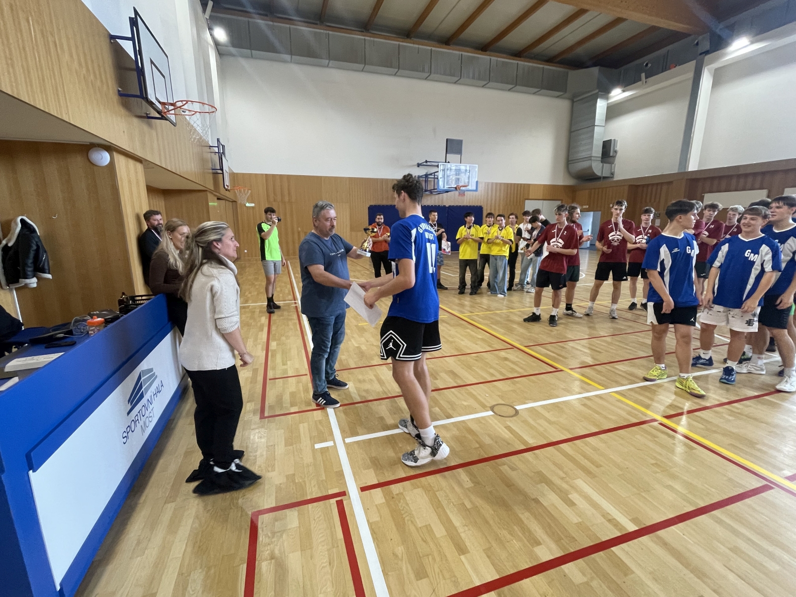 9. října, sportovní hala v Mostě – zvuk basketbalového míče dopadá na palubovku a rozléhá se celou stavbou. Skupiny natěšených sportovců se začínají rojit v útrobách haly a prostorem se šíří zvláštní napětí. To znamená jediné – basketbalový turnaj středních škol za okamžik započne. Výběr našeho gymnázia samozřejmě nemohl chybět. Technicky vyspělí hráči, neúnavní bojovníci, mrštní štírci. Náš zkušený trenérský ansámbl sestavil vyrovnané mužstvo, které aspirovalo na ty nejvyšší příčky!
