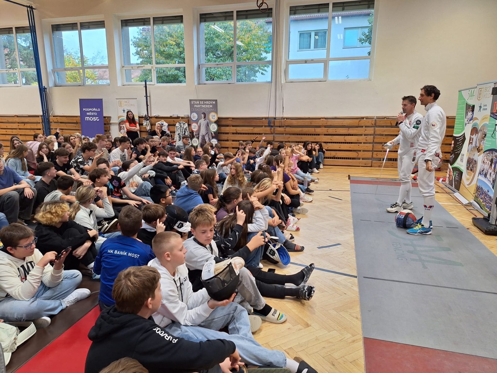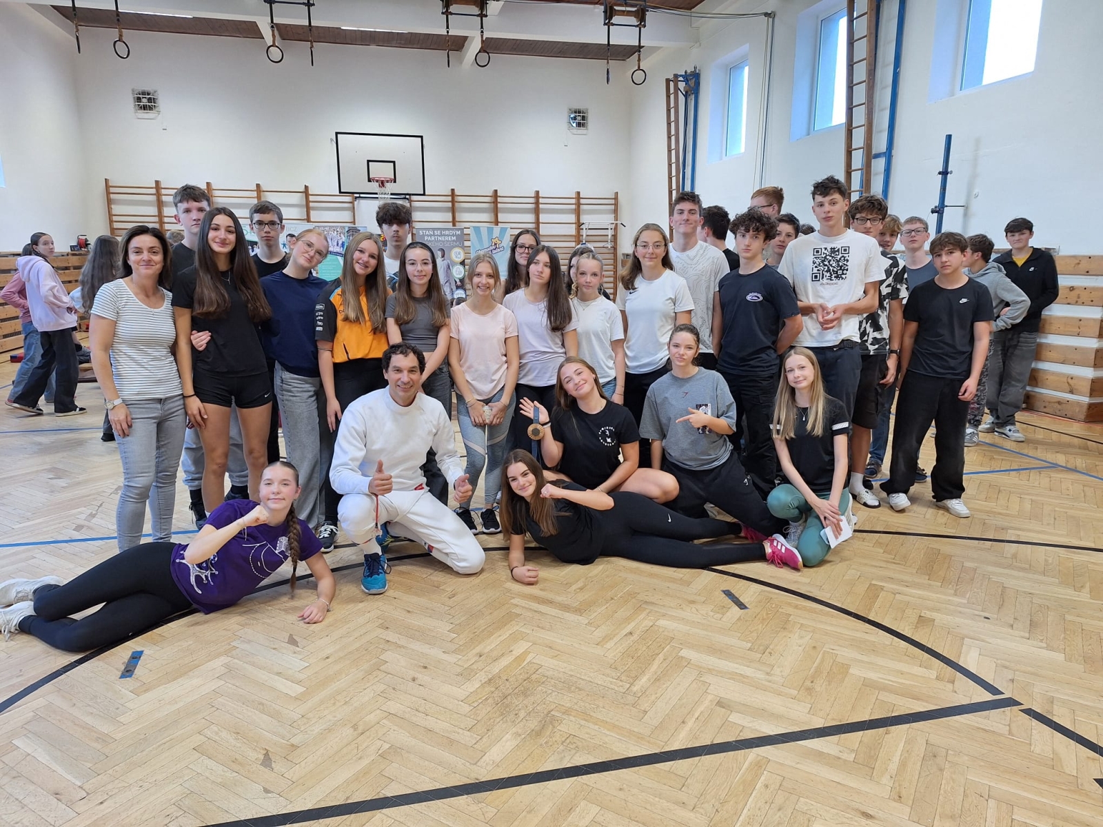 Třetí den projektu Mezi námi přinesl studentům Podkrušnohorského gymnázia jedinečný zážitek plný inspirace, pohybu a praktických dovedností. Do Mostu zavítal olympionik Jiří Beran – bronzový medailista z olympijských her v Paříži a uznávaný reprezentant České republiky v šermu.
