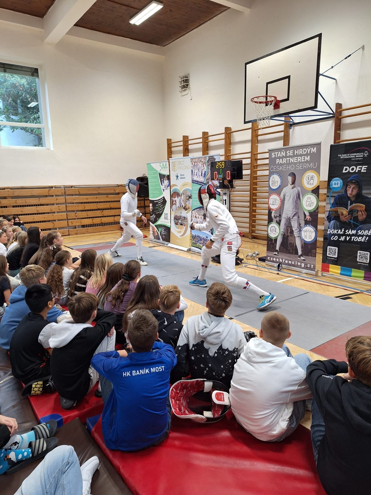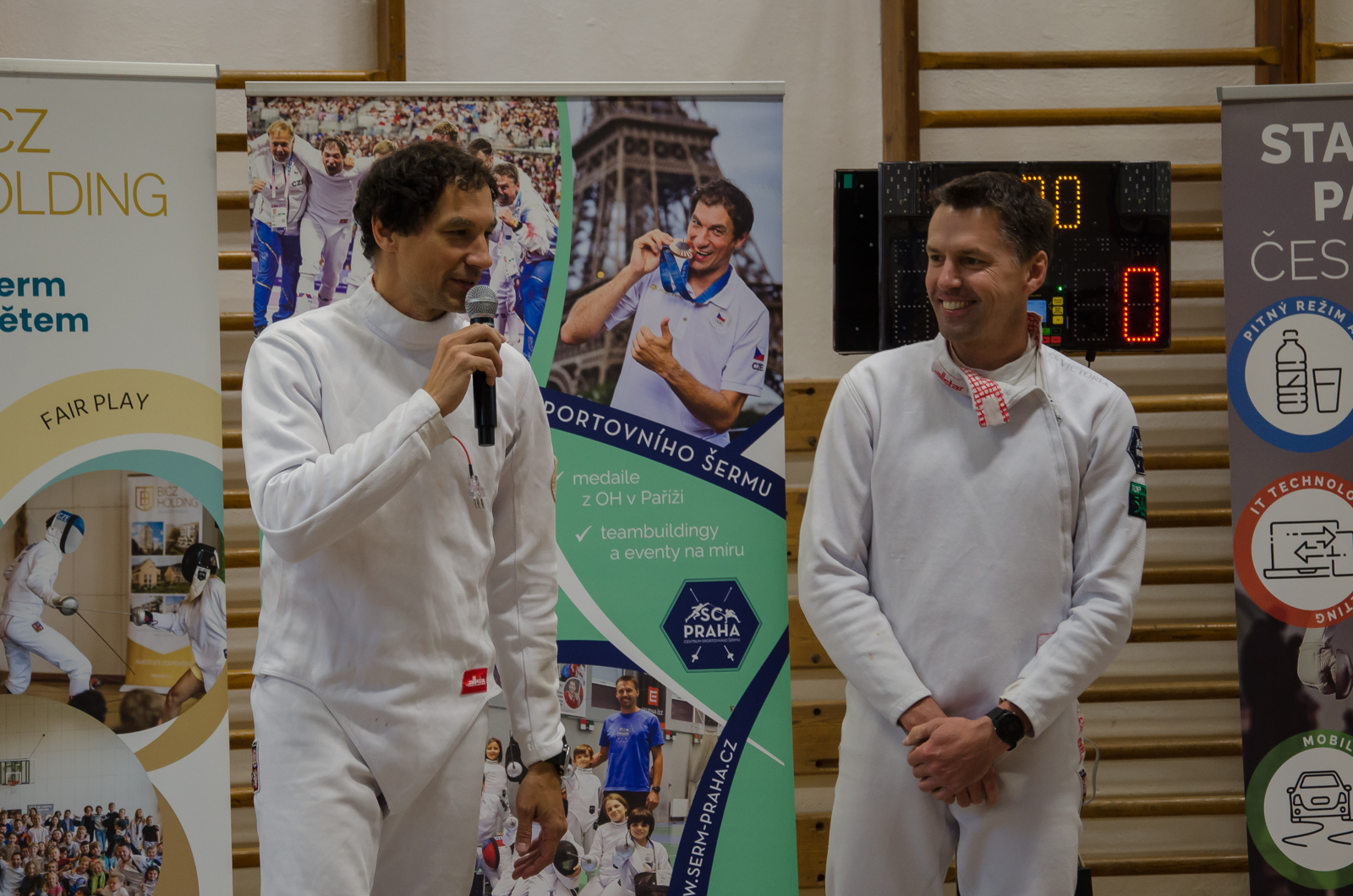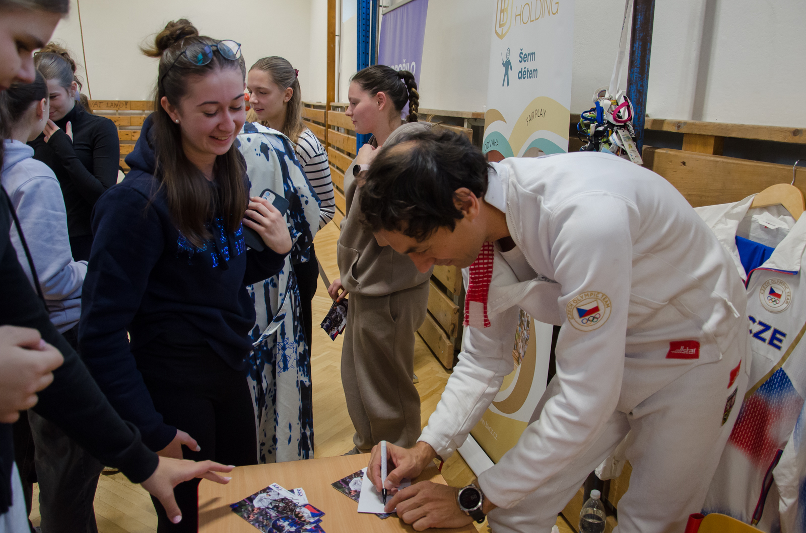 Program začal atraktivní ukázkou šermu mezi Jiřím Beranem a trenérem Martinem Čapkem, která okamžitě vtáhla studenty do dění. Následně si mohli sami vyzkoušet šermování ve dvojicích, a ti nejodvážnější si dokonce zasoutěžili přímo s Martinem Čapkem. Atmosféru doplnila výstava olympijských medailí a slavnostního pláště, který se dostal do výběru nejlepších outfitů zahajovacího ceremoniálu. Vrcholem dne byl nečekaný souboj mezi Jiřím Beranem a panem ředitelem.