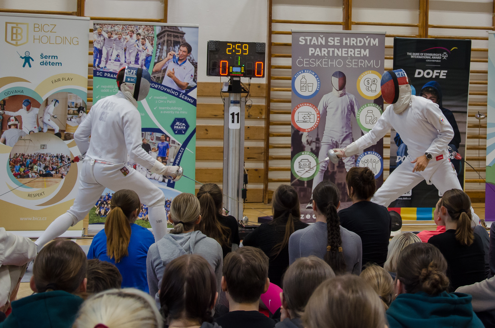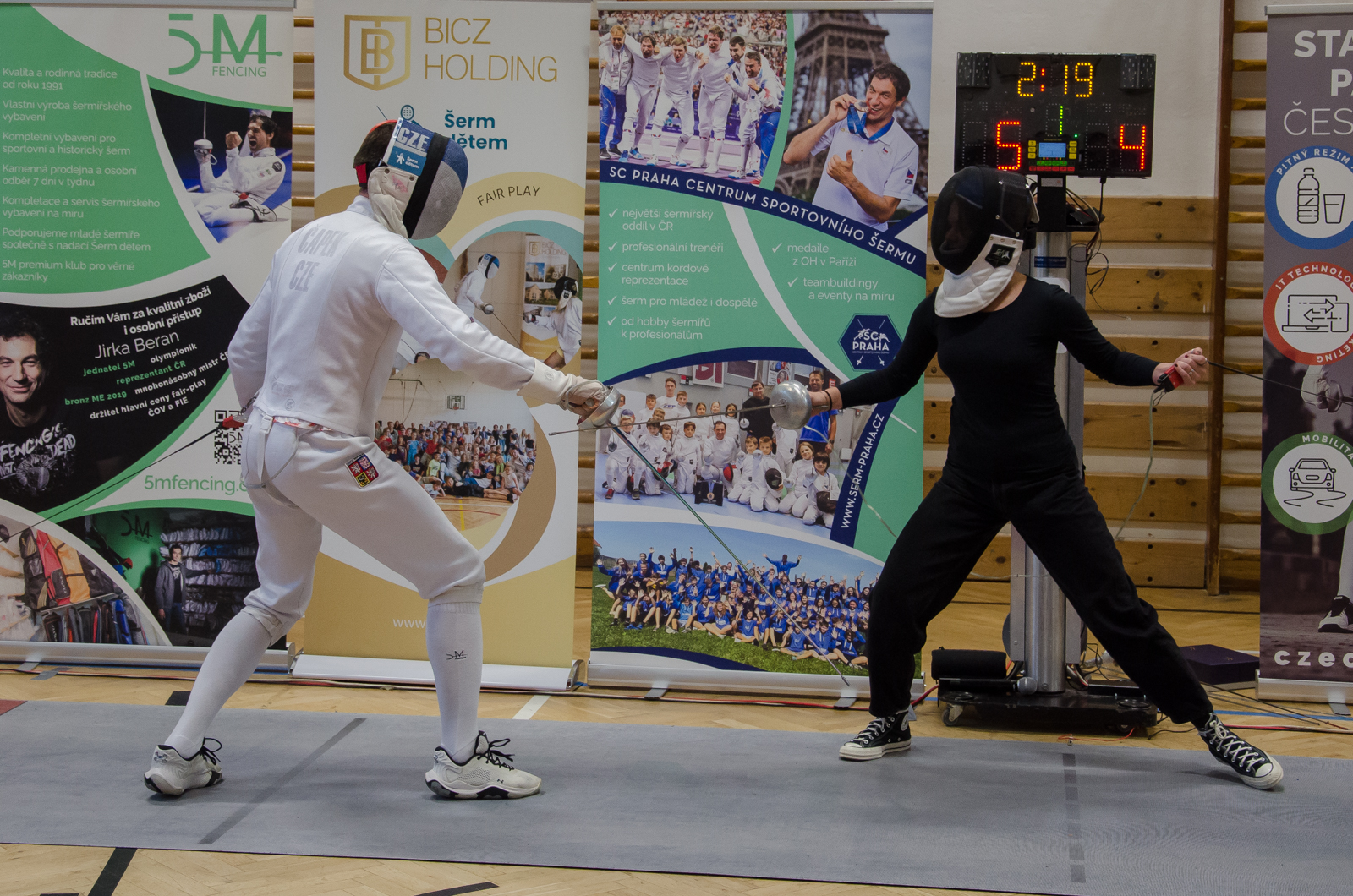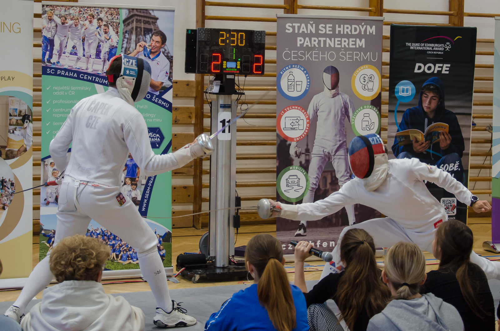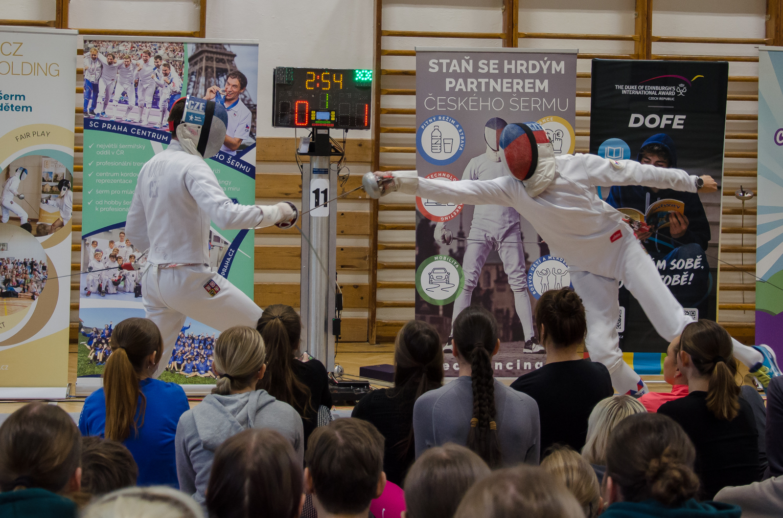 Program začal atraktivní ukázkou šermu mezi Jiřím Beranem a trenérem Martinem Čapkem, která okamžitě vtáhla studenty do dění. Následně si mohli sami vyzkoušet šermování ve dvojicích, a ti nejodvážnější si dokonce zasoutěžili přímo s Martinem Čapkem. Atmosféru doplnila výstava olympijských medailí a slavnostního pláště, který se dostal do výběru nejlepších outfitů zahajovacího ceremoniálu. Vrcholem dne byl nečekaný souboj mezi Jiřím Beranem a panem ředitelem.