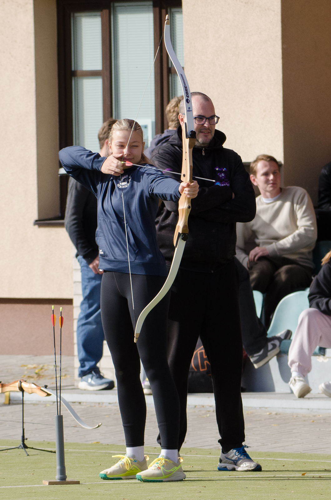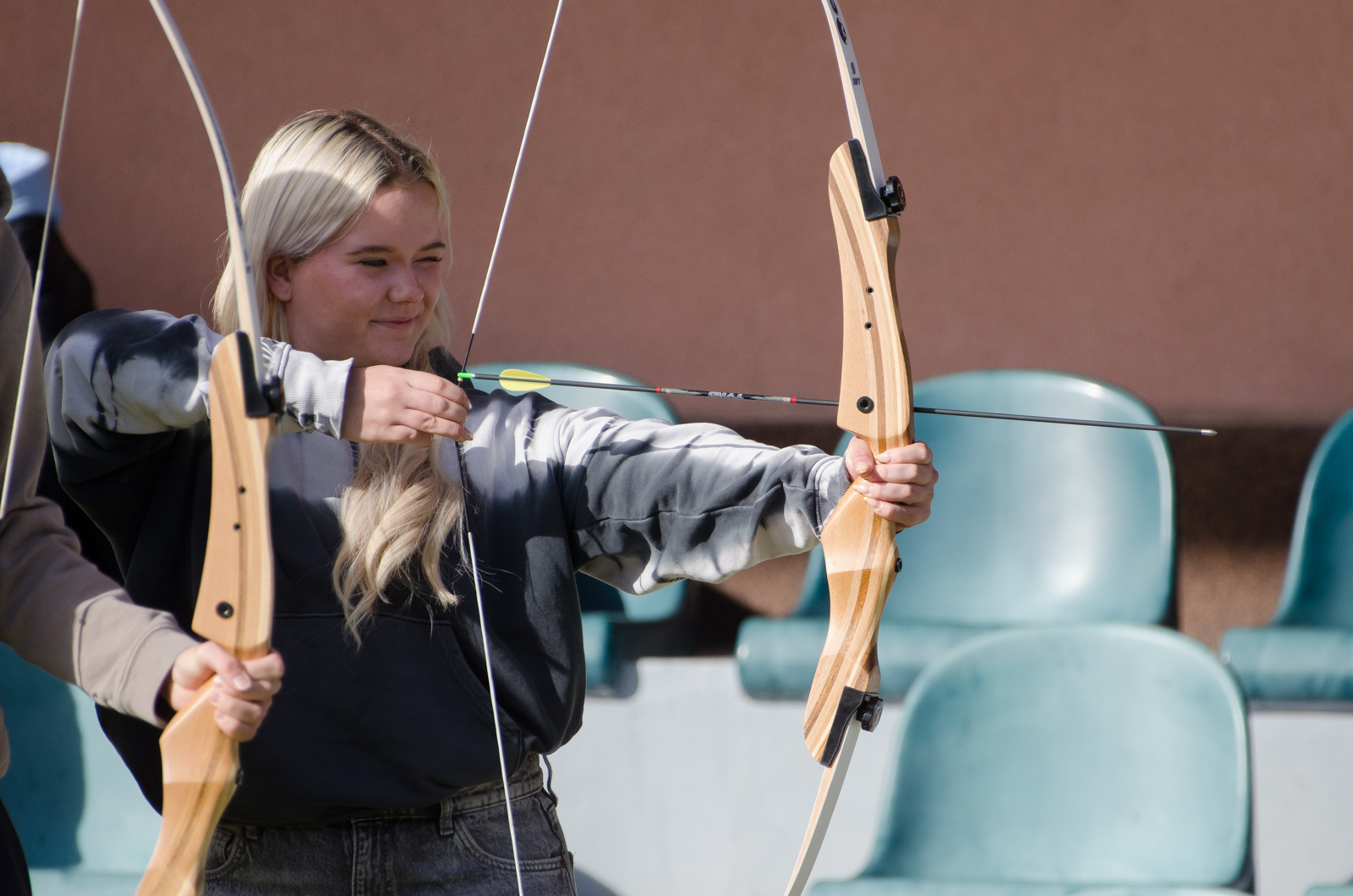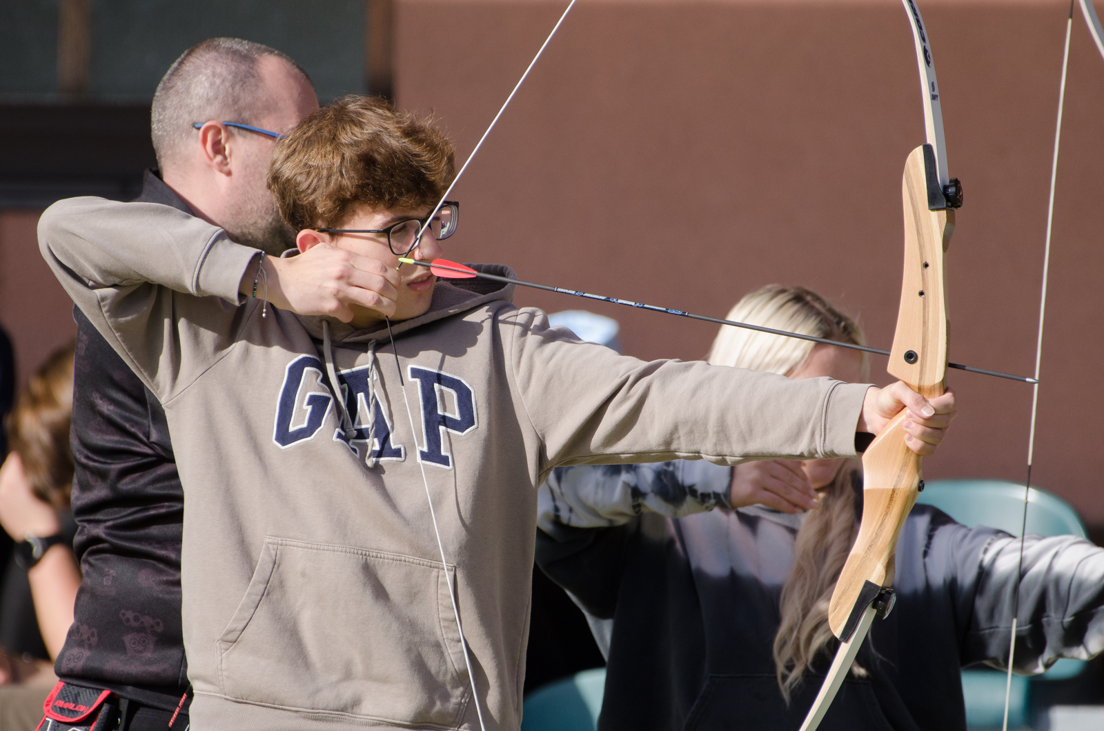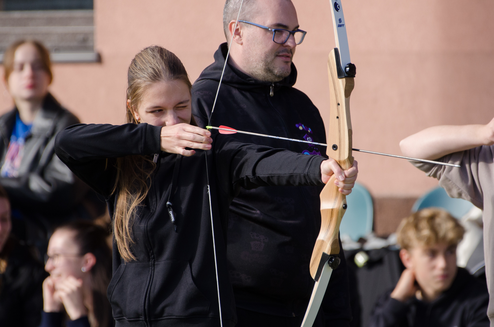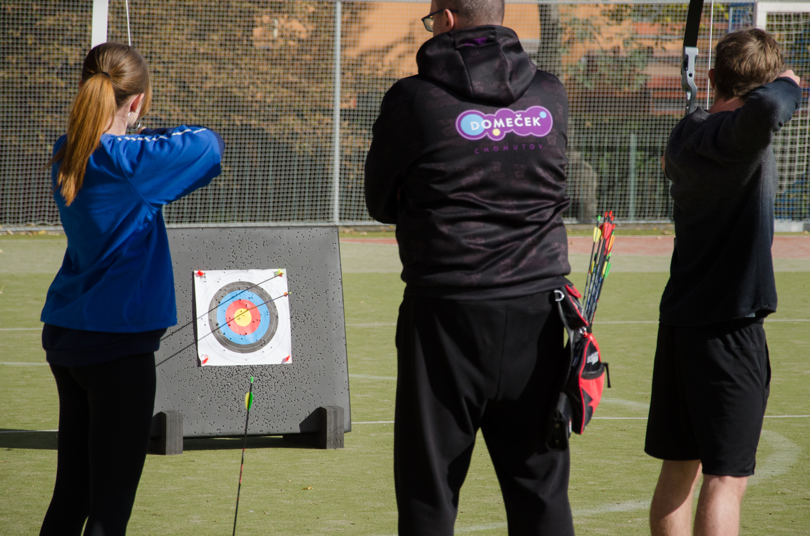 Součástí dne byla také lukostřelba na venkovním hřišti. Po úvodním seznámení s pravidly a bezpečností se studenti rozdělili do dvojic a stříleli na terče. Aktivita měla velký úspěch a mnozí projevili zájem o nově nabízený lukostřelecký kroužek.