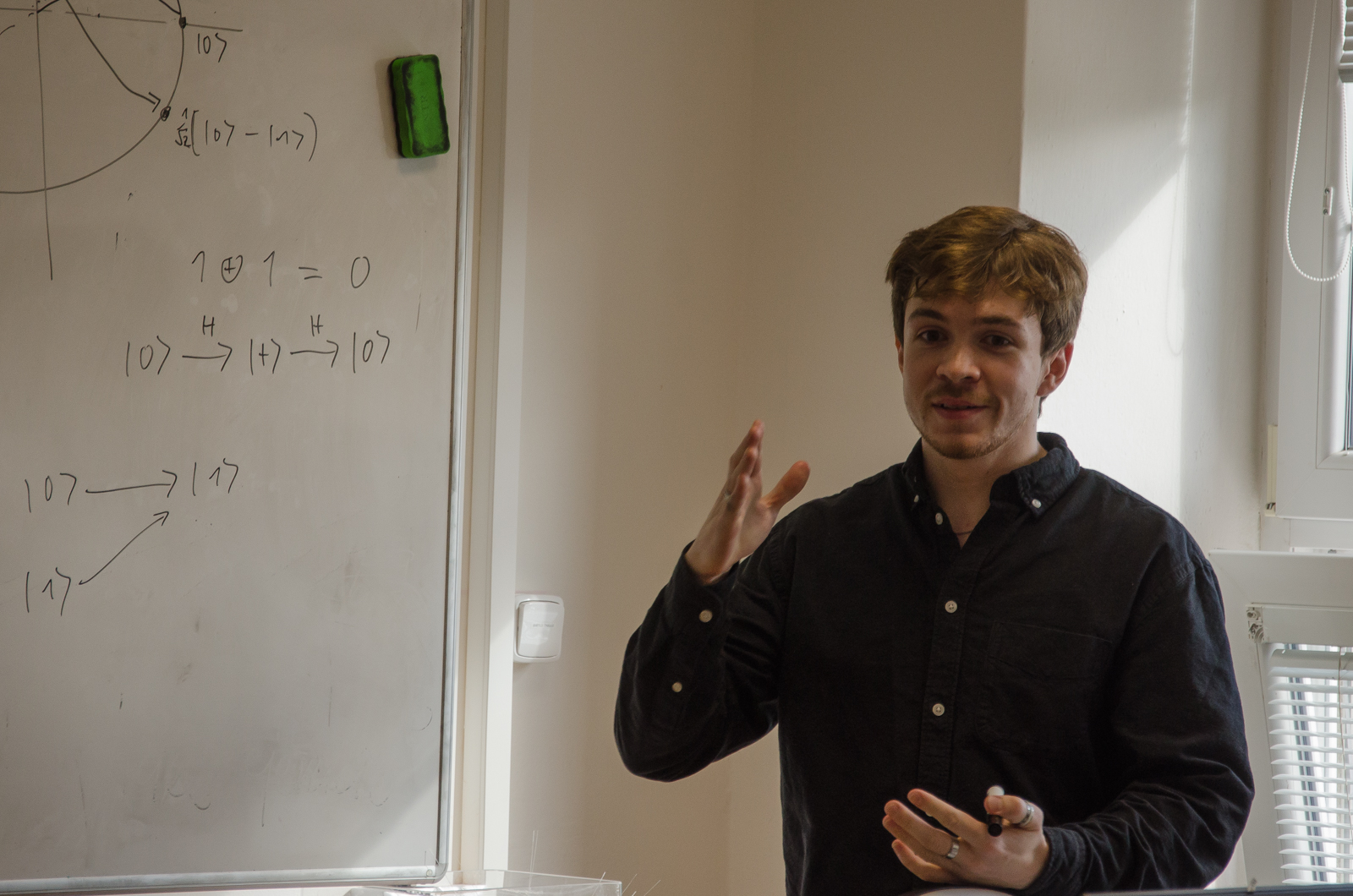 O patro níž, v učebně fyziky, se zase setkali studenti, kteří nachází fascinaci ve fyzice a matematice. Tentokrát se pod vedením zkušeného Honzy Apolína, studujícího kvantovou fyziku na University of Oxford, zanořili do tajů kvantového počítání.