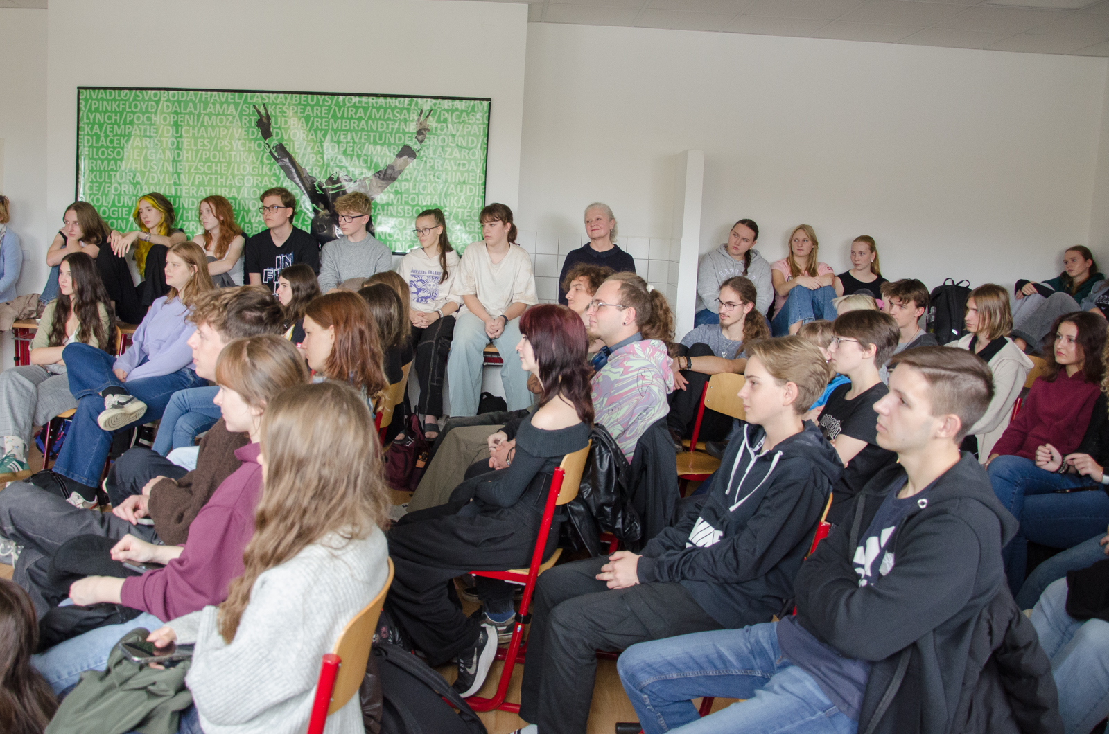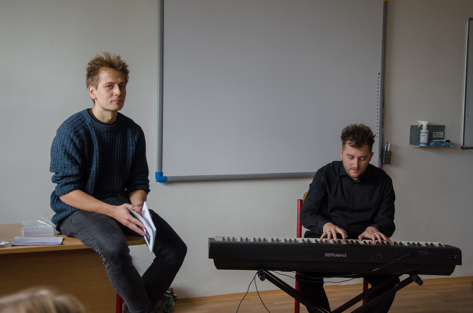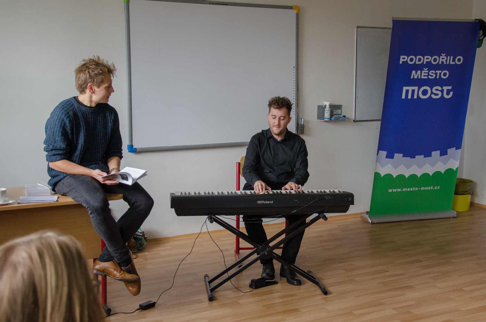 Následovala ale i trochu osobnější témata, a to hlavně když nám přišla majitelka kavárny The Most café povyprávět o jejím vztahu ke kavárně a o tom co pro ni znamená. Náš úžasný týden zakončila básnická umělecká dvojice absolventů našeho gymnázia Tomáše Henryho Abrahama a Martina Rufera, kteří představili především svojí autorskou tvorbu a povídali o důležitosti umění jako celku.