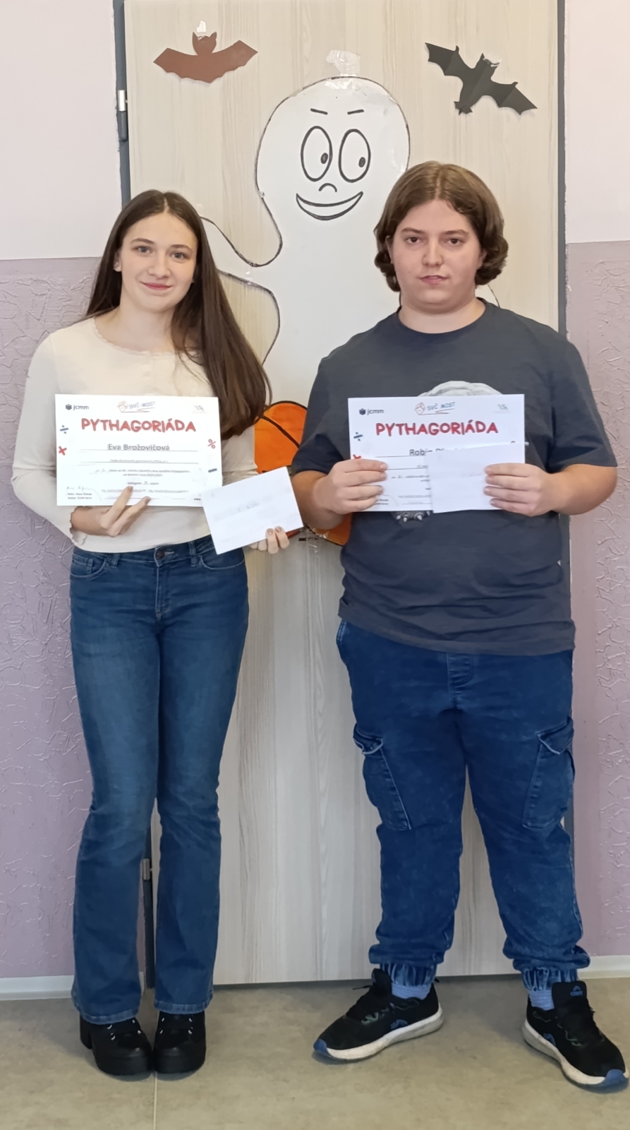 Naši školu reprezentovali úspěšní řešitelé ze školního kola splňující další pravidla soutěže. Ve všech kategoriích se umístili na předních místech. Jmenovitě bych vyzdvihla Pavla Mayera ze sekundy A a Evu Brožovičovou z kvarty A, kteří získali 14 bodů z 15. Ostatní umístění najdete ve výsledkových listinách.