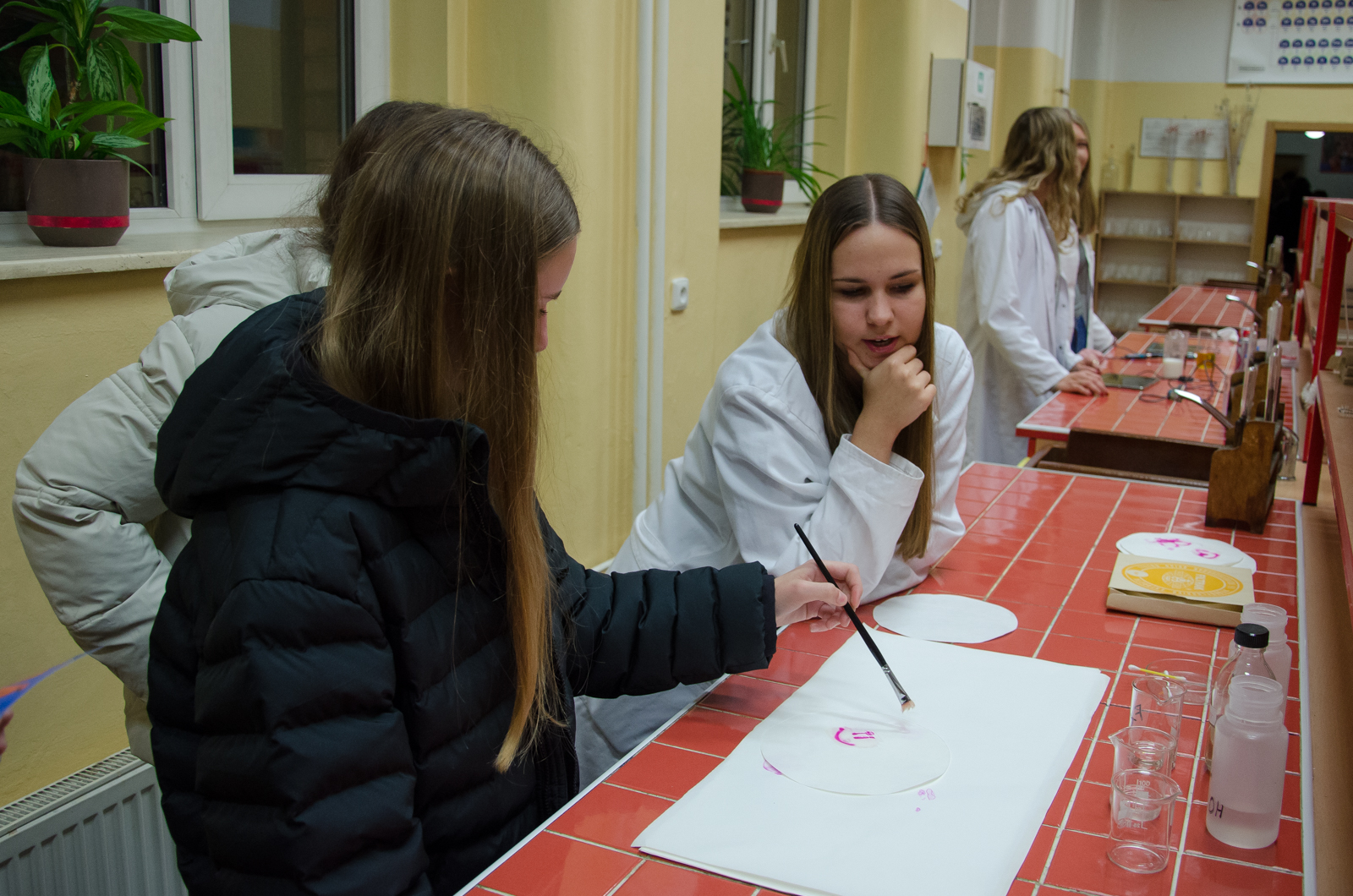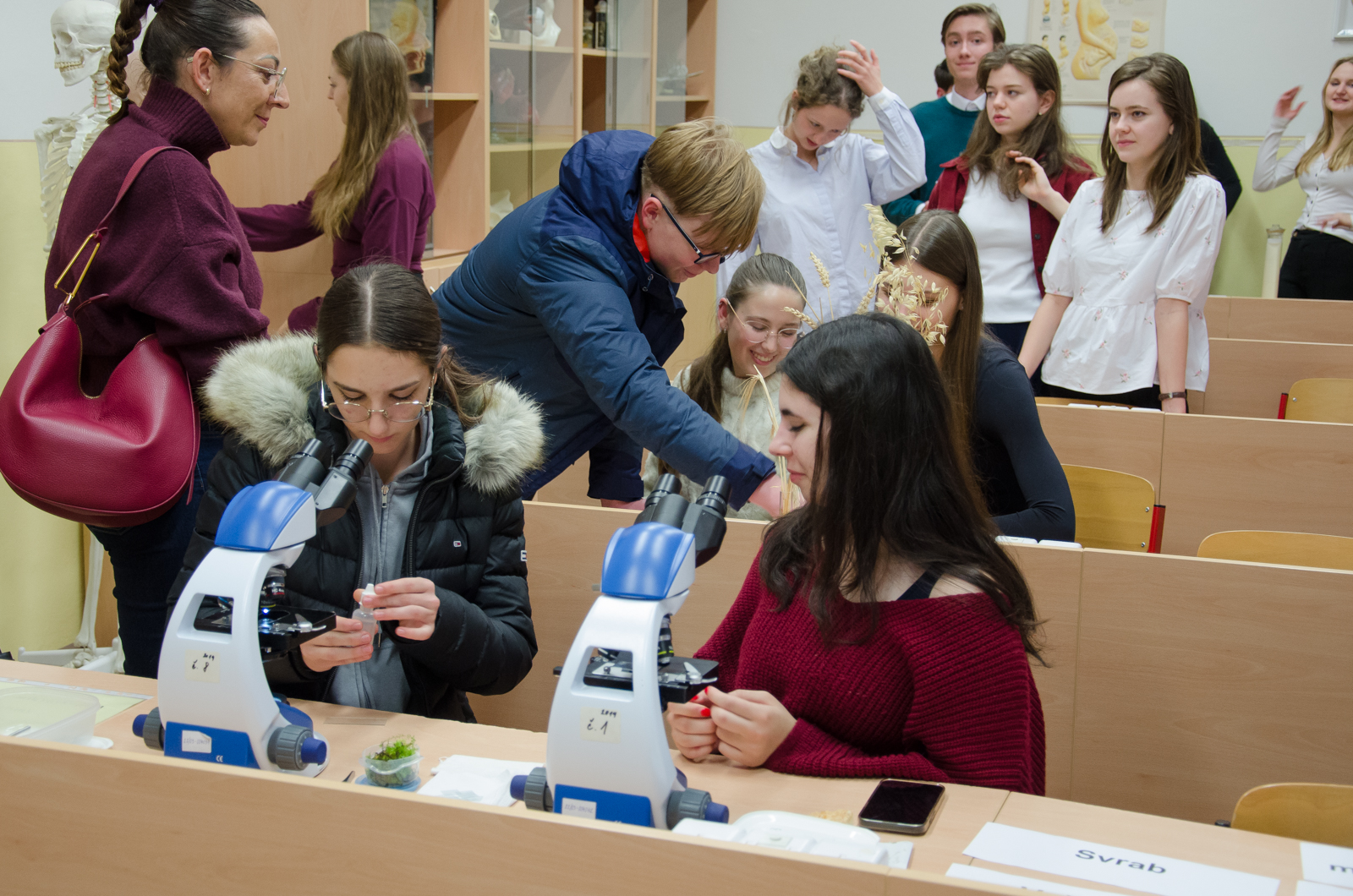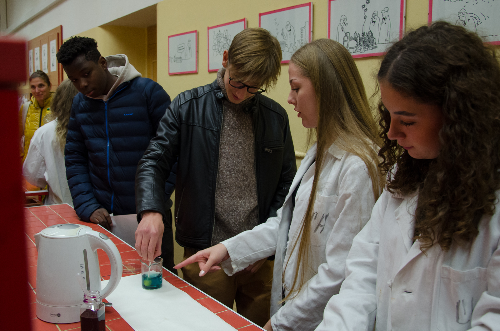Naši učitelé spolu se svými studenty připravili zajímavý a nápaditý program. Hned po otevření v 16 hodin bylo jasné, že zájem bude veliký. Škola se naplnila zájemci a my jsme mohli prezentovat, jak šikovné máme studenty. Kultivovaně a s přehledem provázeli návštěvníky světem biologie, matematiky, fyziky, chemie, zeměpisu, dějepisu, cizími zeměmi, jejichž jazyky se u nás učí, světem umění a literatury atd. A došlo i na východní bojové umění.
