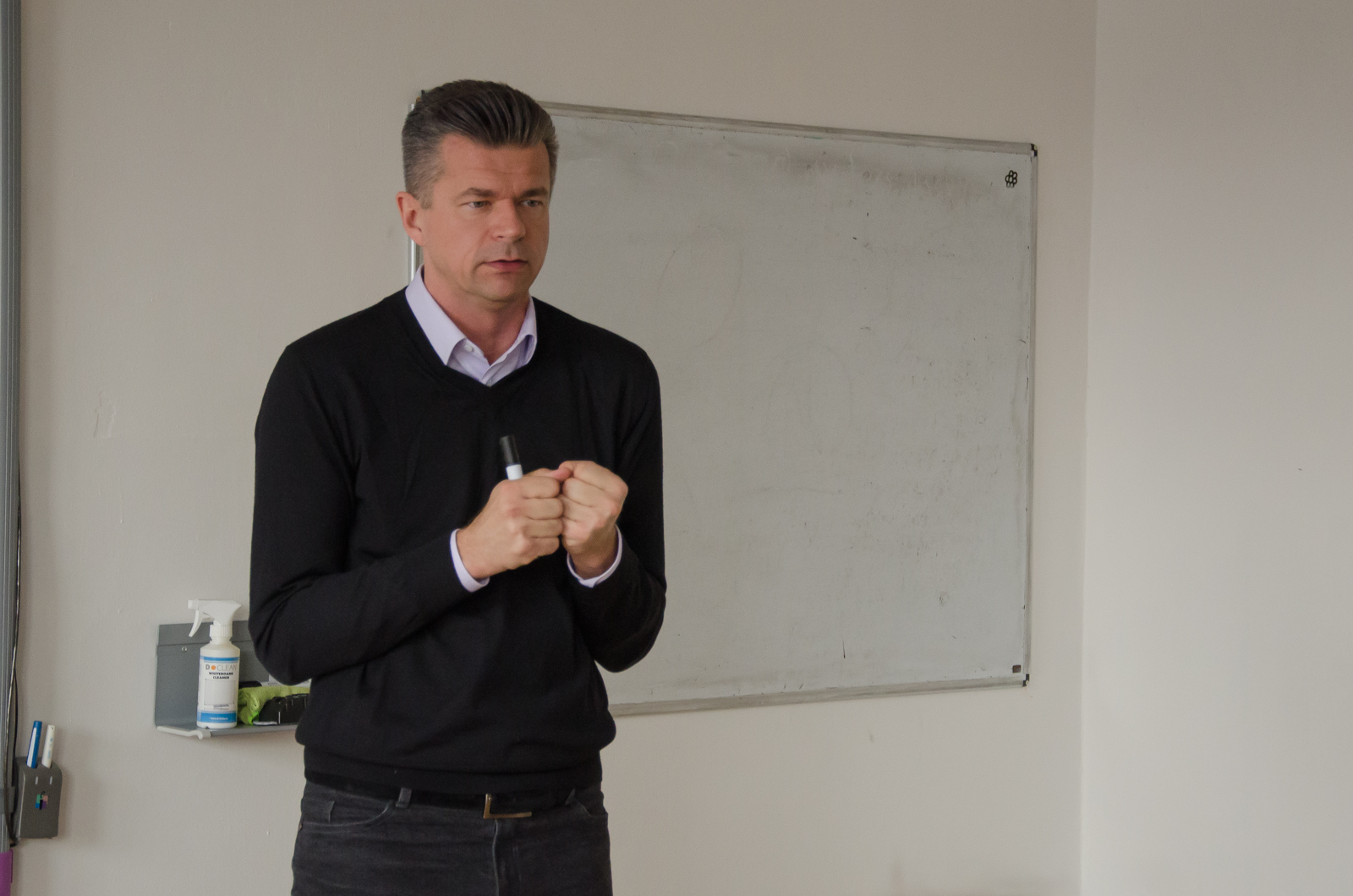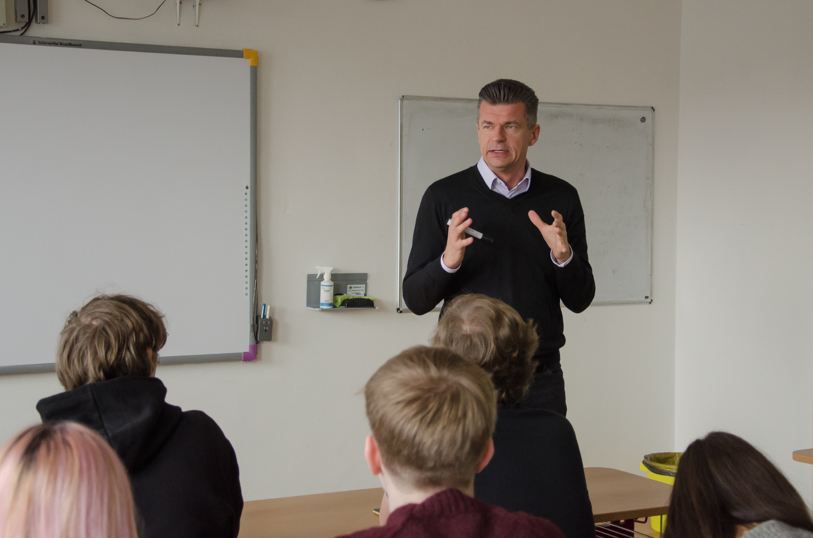 Našim studentům tak v téměř 2 hodinách nejprve vyprávěl o své cestě k podnikání, ale hlavně vedl živou diskuzi o tom, co to vlastně znamená podnikat a na co všechno by měl dobrý podnikatel, ale také občan myslet. Promluvil tak nejen o pomíjivém vztahu k penězům ale i o tom, jak bychom měli dbát o své okolí, životní prostředí a blízké. Martin tím dokázal rozbít stereotyp o podnikatelích jako handlířích bez srdce a ukázat všem, že pravý klíč k úspěšnému životu i podnikání se skrývá v nás samých a našich činech.