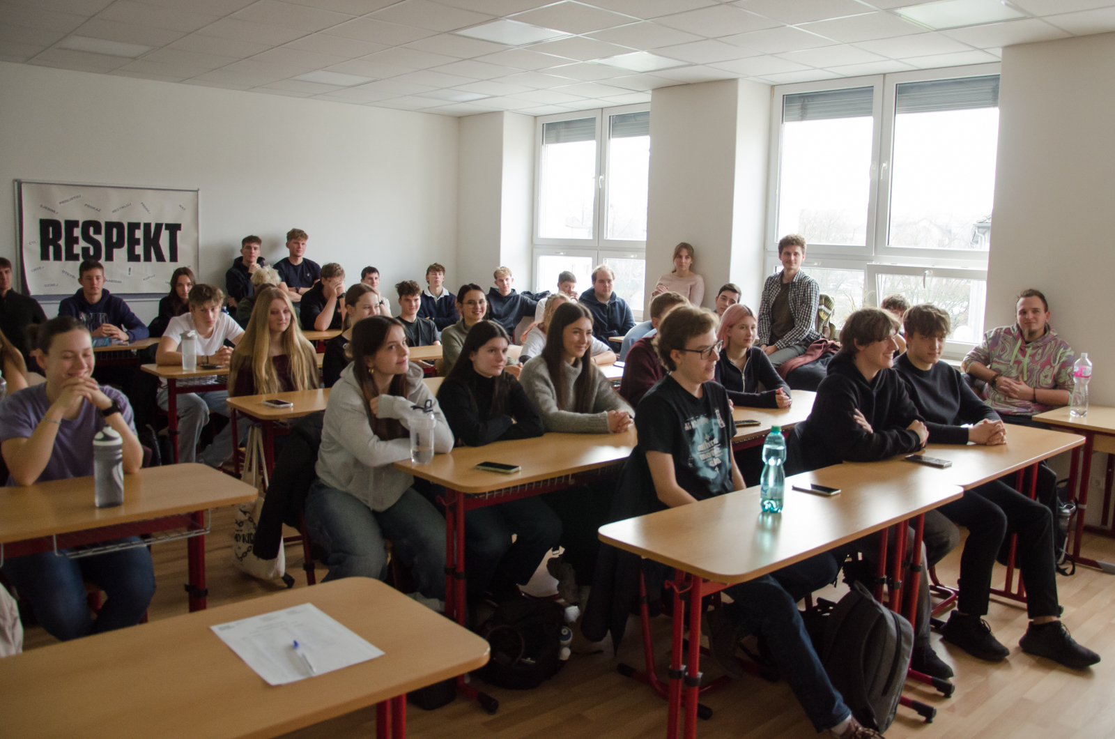 Následovala samozřejmě diskuze, kde se žáci ptali na zajímavé dotazy a Martin se nakonec ptal i obráceně studentů na to, co je nejvíce trápí. Probírala se tak i demografická situace, extrémismus, polarizace ve společnosti či nástrahy a výhody AI.