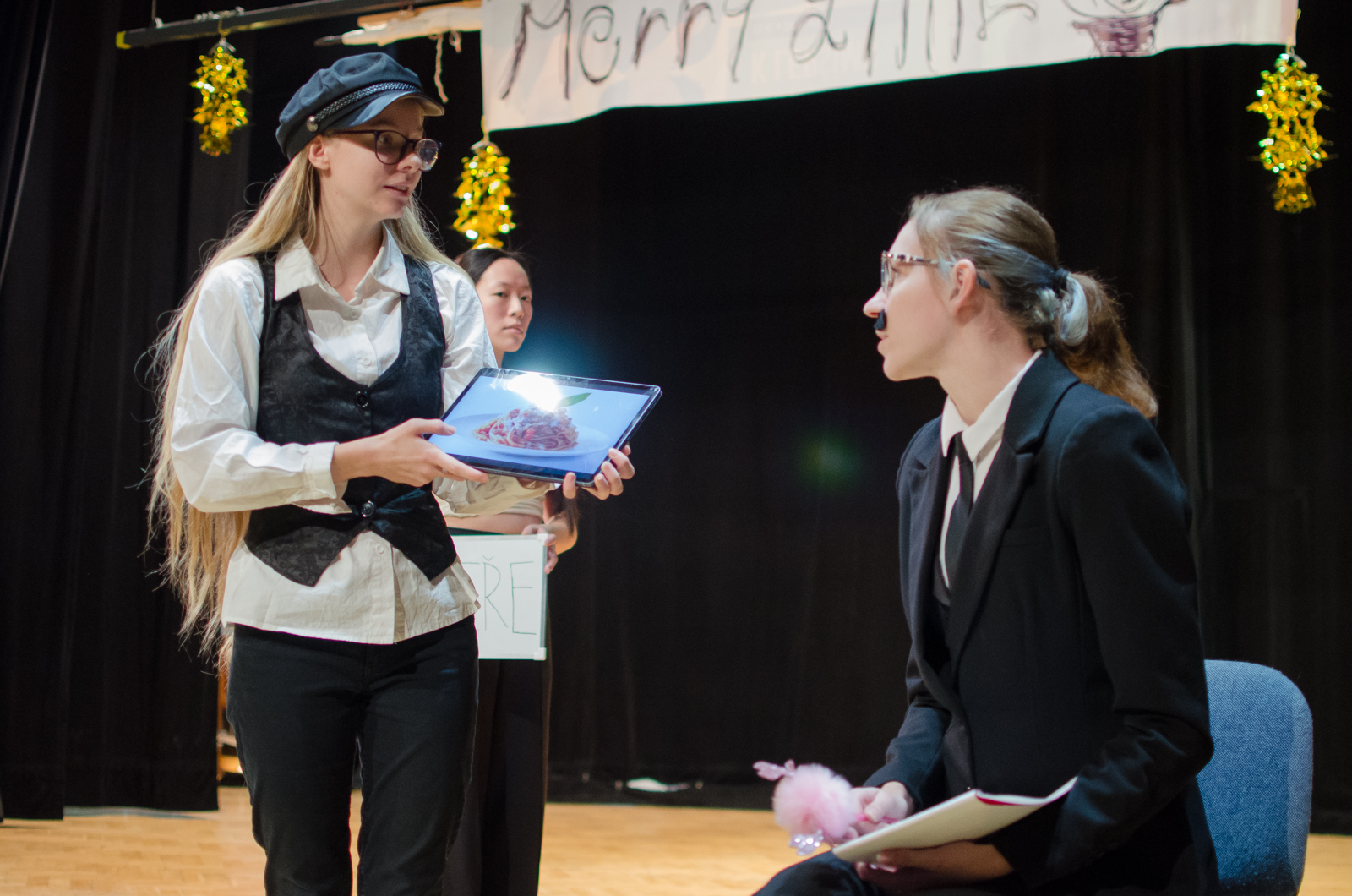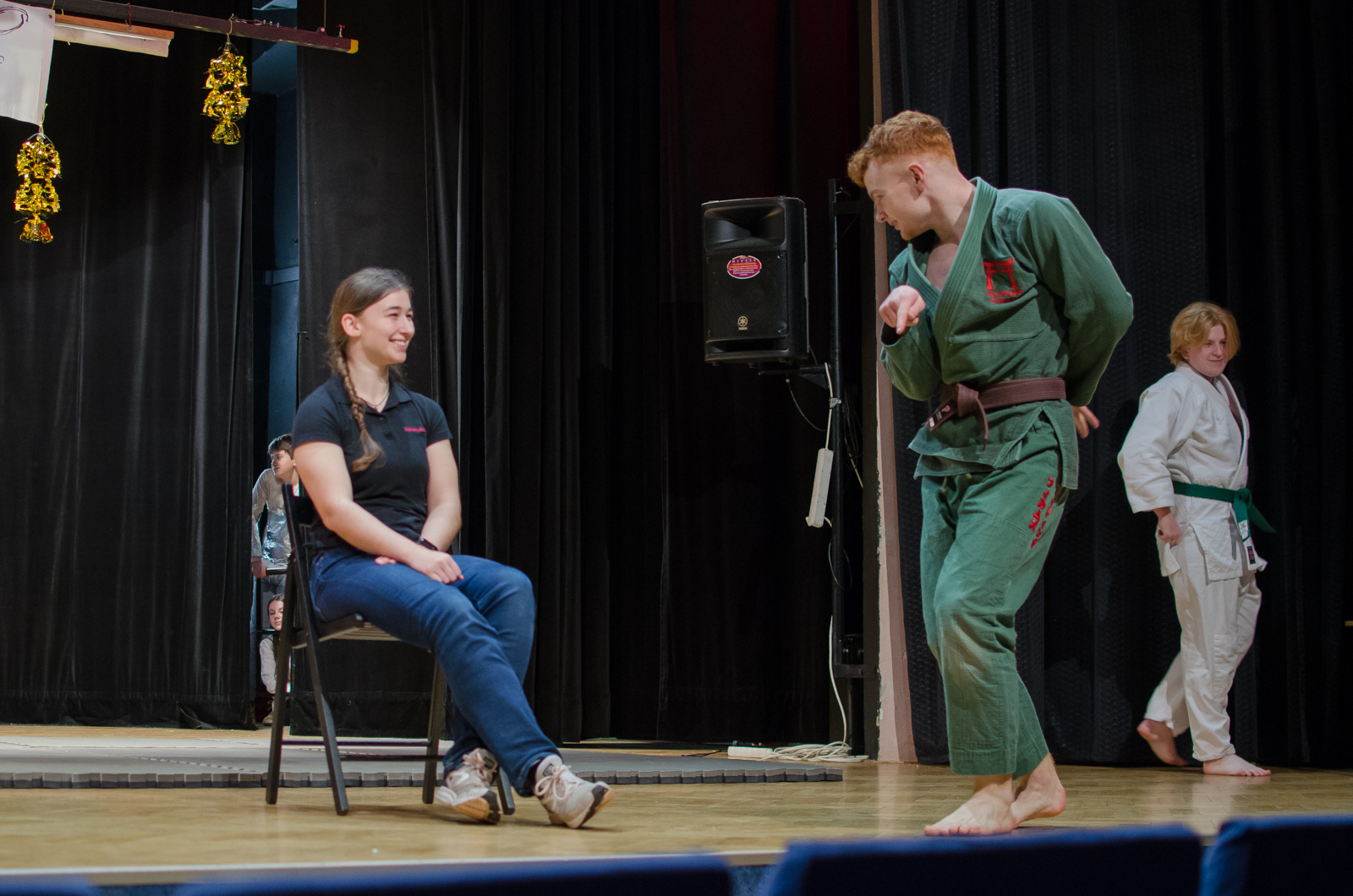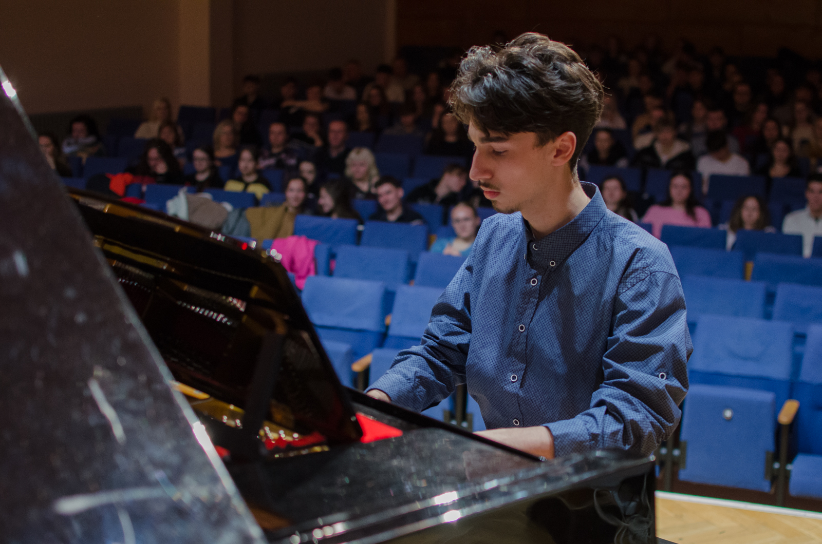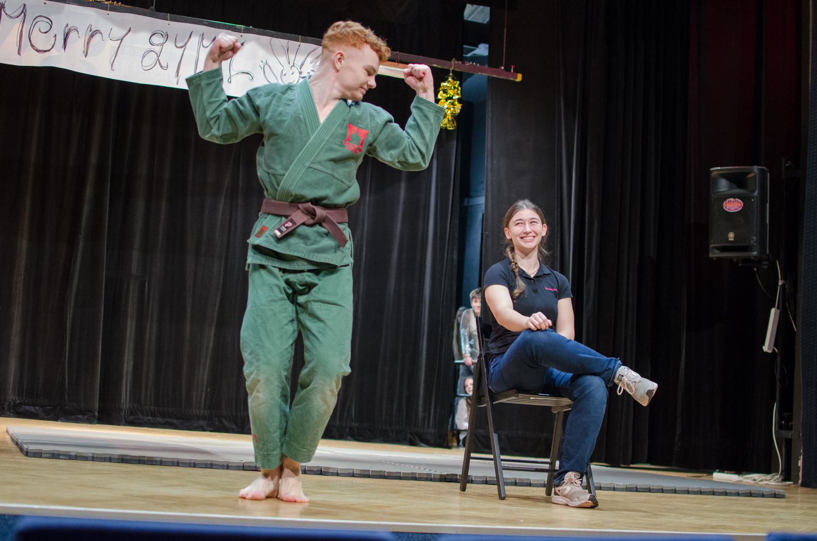 Žáci školy si mohli vyslechnout sólovou hru na klavír v podání těchto interpretů: Vojtěcha Dvořáka (O3), Tomáše Gáby (1.A), Anujin Gombodori (1.B) a Tadeáše Krále (3.C). Písně zazpívaly Solomia Bobko (O2), Barbora Kurachová (3.A), Kristýna Loukotová (1.B) a Aneta Pašková (4.B) spolu s Karolínou Gremlicovou (O8). Na akordeon se představil Lukáš Bubeník (O2) a na elektrickou kytaru skvělý Jiří Laštovka (O1). Taneční scénu reprezentovala Amálie Raková spolu s tanečním souborem ZUŠ Most. Ukázky juda a jiu jitsu předvedli Hynek Pomahač (O8) ve spolupráci s Vítem Pomahačem a Janem Fajfrtem. Vlastní tvorbu představila i paní učitelka Mgr. Ivana Hotová. Divadelní představení nám předvedli žáci tercie a oktávy. Celým programem provázela moderátorská dvojice Klára Uškovičová a Tomáš Balín z oktávy. Doufáme, že se jednotlivá vystoupení žákům i učitelům líbila. Tímto bychom chtěli též všem účastníkům akademie poděkovat a všem žákům a učitelům popřát krásné a veselé vánoční svátky.