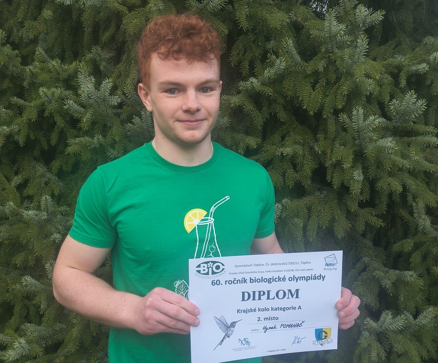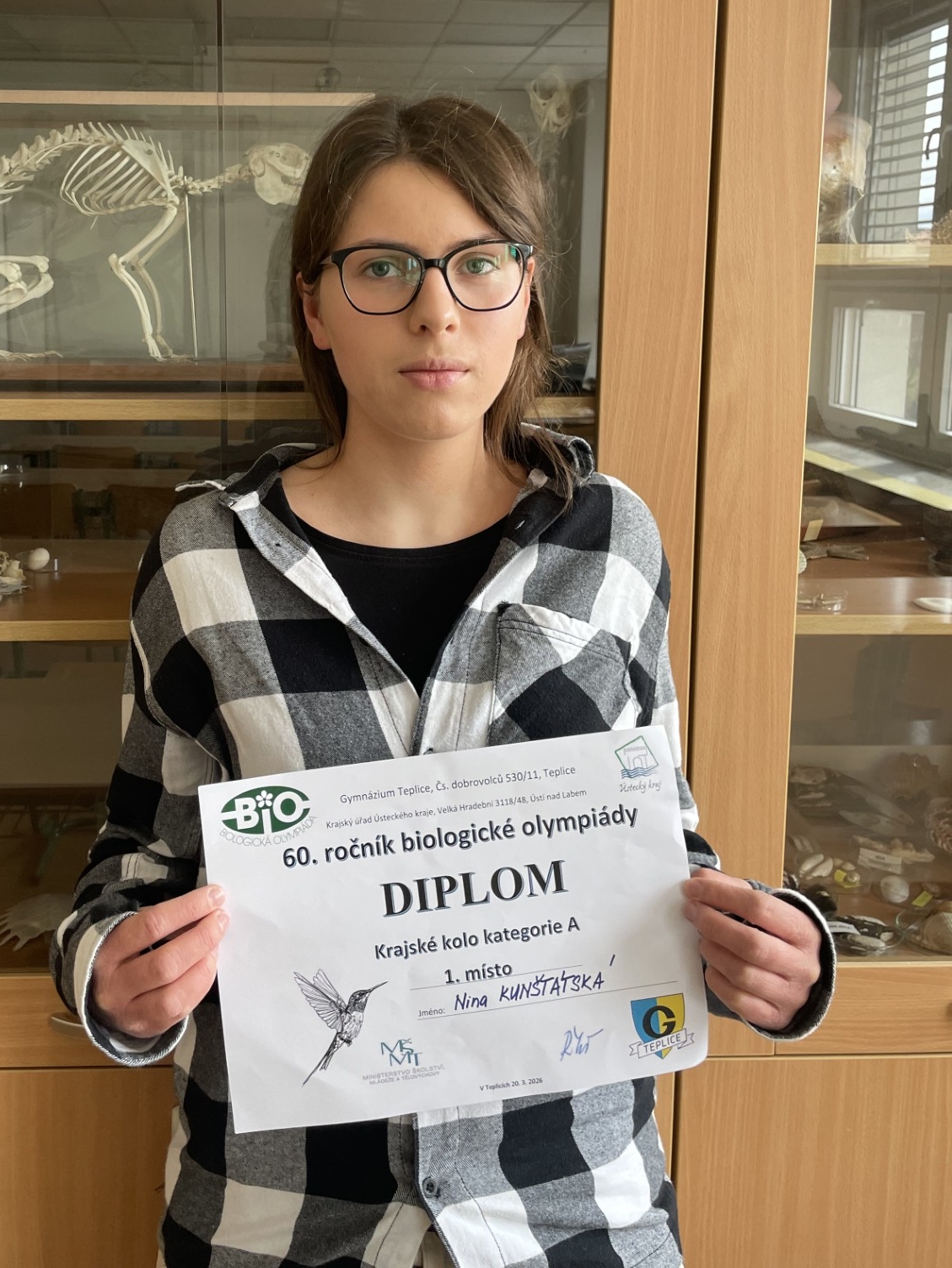 Na teplickém gymnáziu se uskutečnilo krajské kolo biologické olympiády kategorie A, kterého se zúčastnili i studenti našeho gymnázia. Školu reprezentovali Hynek Pomahač z oktávy a Nina Kunštátská ze 3.C.