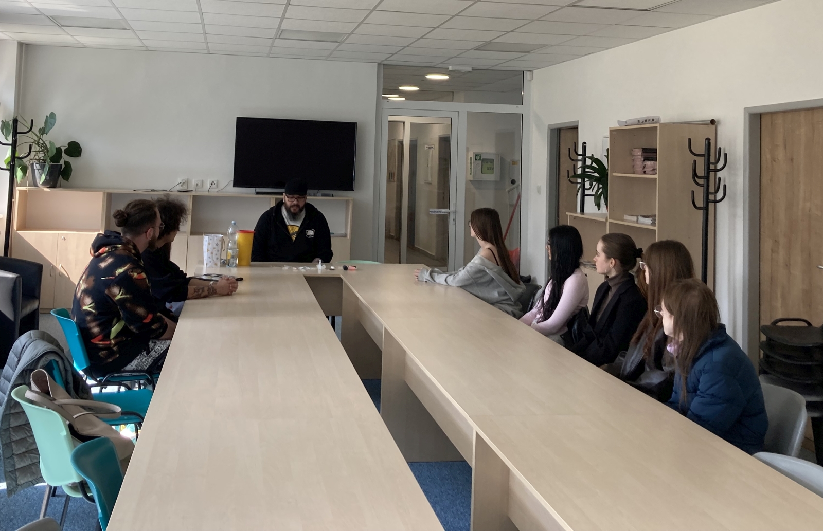 Pracovník centra pan Karel Fiala studentům přiblížil, jak důležitá je motivace klientů ke změně životního stylu a minimalizace rizik spojených s užíváním návykových látek. Během setkání také ochotně zodpověděl dotazy studentů týkající se jeho práce, včetně náročnosti profese a rizika vyhoření, a popsal proměny drogové scény v posledních letech.