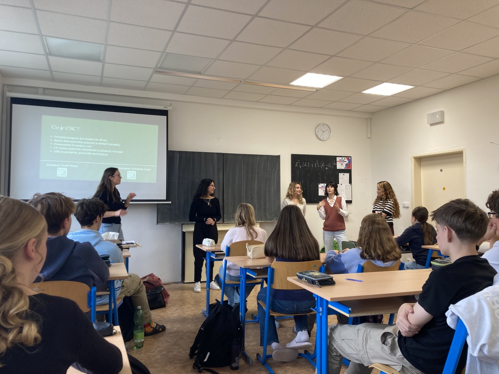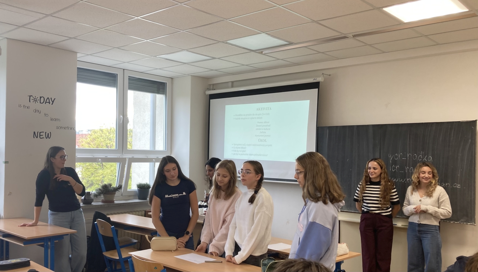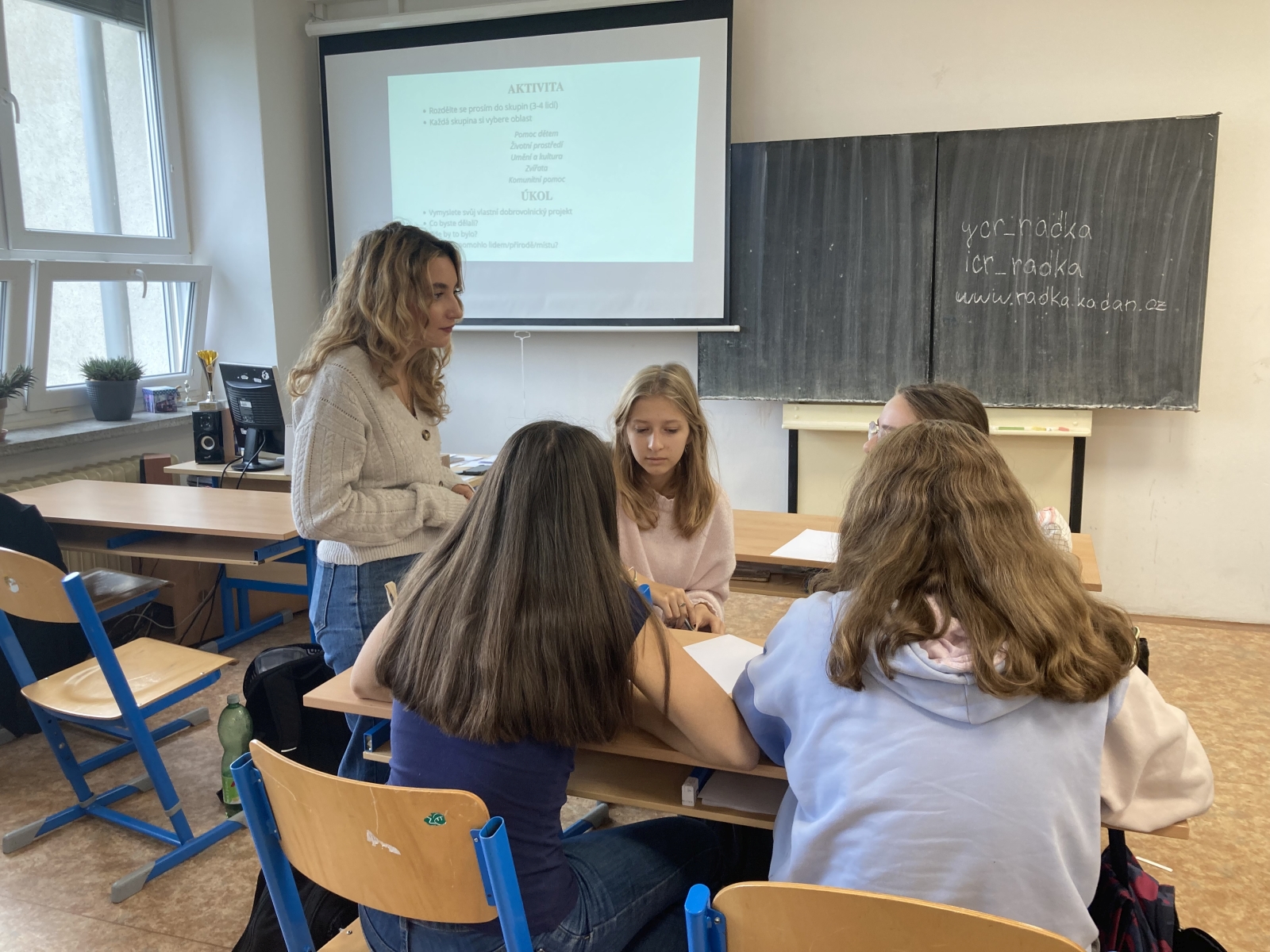 Hodina probíhala velmi interaktivně – mohli jsme s dobrovolnicemi mluvit anglicky a ve skupinách jsme si vyzkoušeli vymyslet vlastní lokální dobrovolnický projekt. Setkání bylo zajímavé, inspirativní a přineslo nám nové poznatky, které jistě využijeme i v budoucnu.