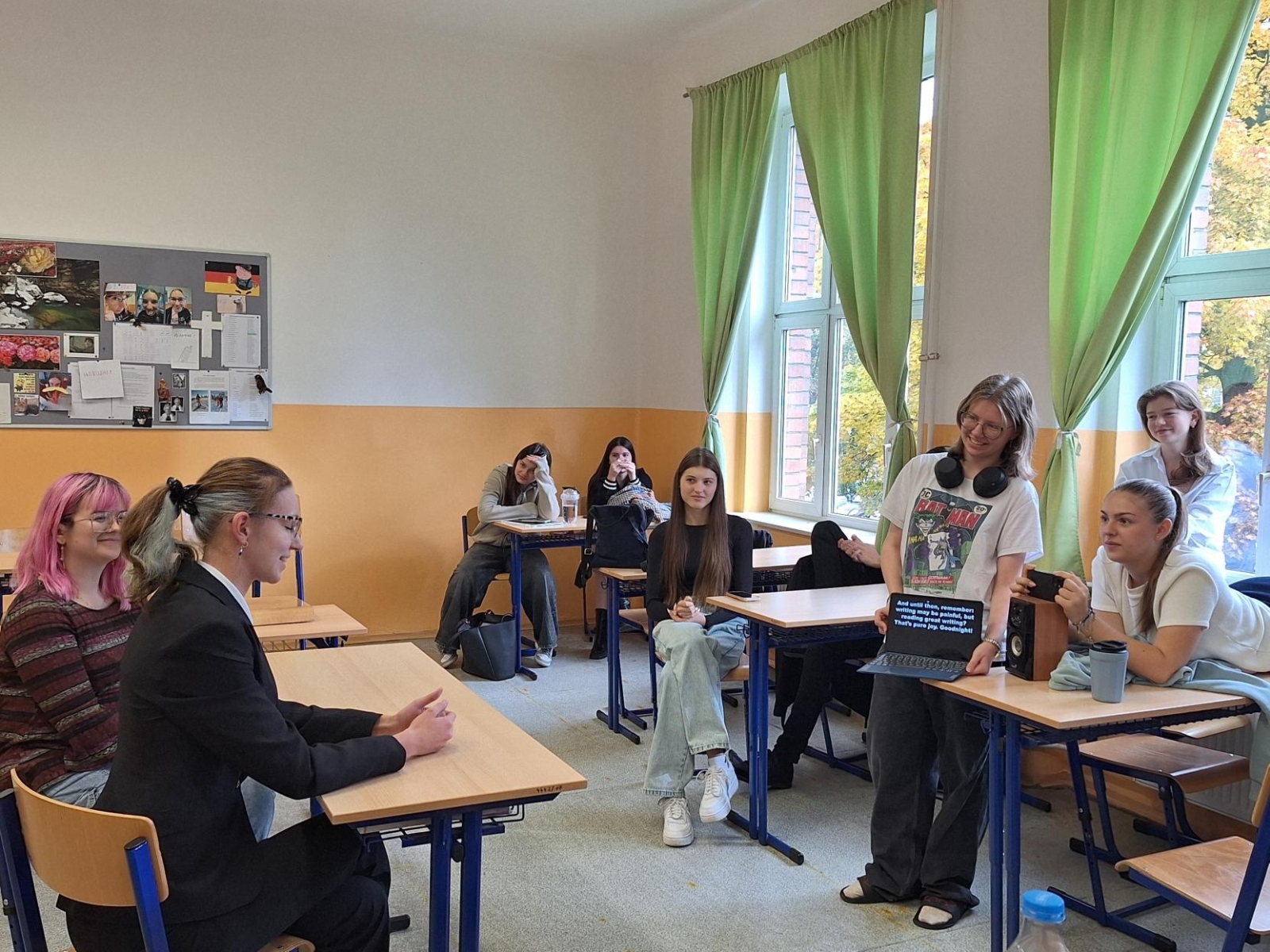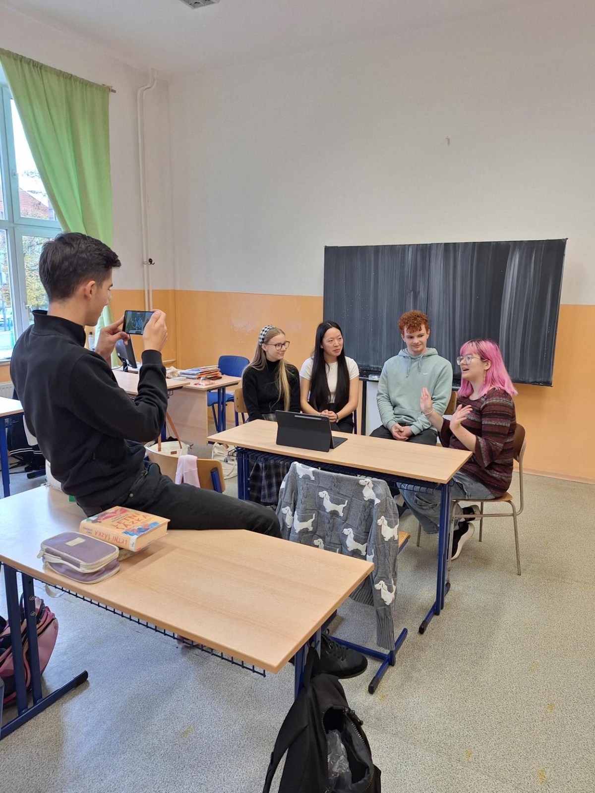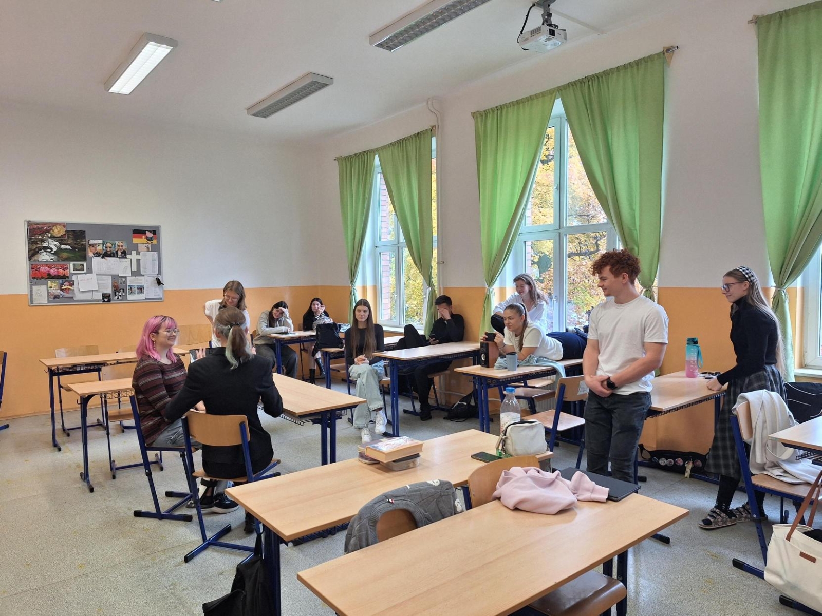 Každá skupina si zvolila vlastní téma – od kulturních rozdílů až po oblíbenou literaturu či školní život. S Victorií jsme si mohli procvičit nejen slovní zásobu, ale i schopnost reagovat v reálné komunikaci.