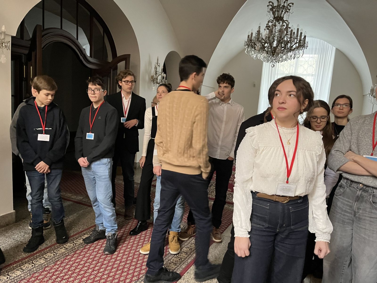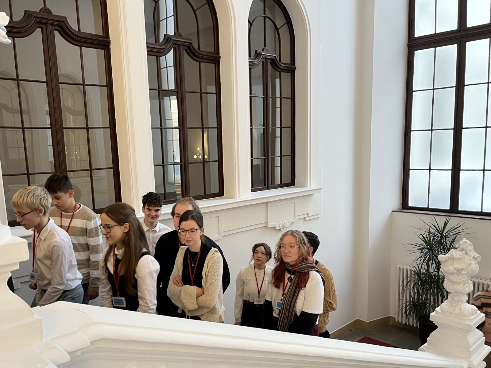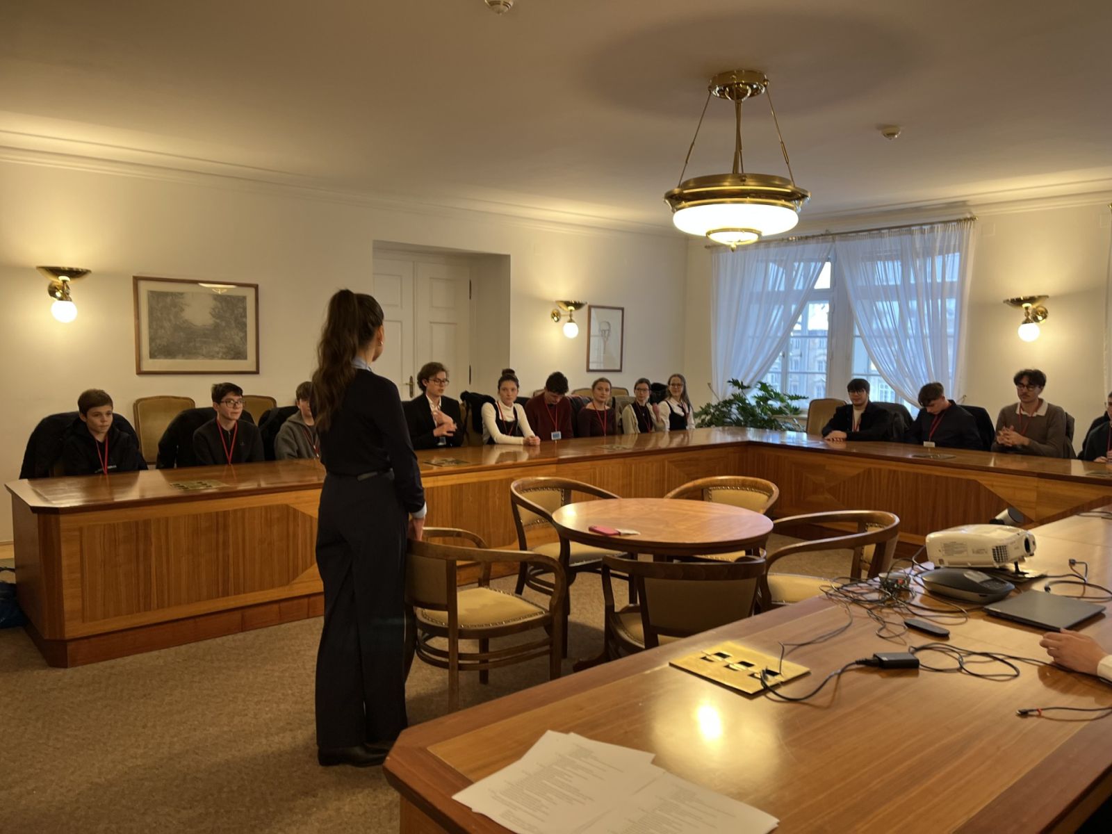 Exkurze se i navzdory nepřízni zasněžených cest povedla uskutečnit a za to patří velký dík radě Školního parlamentu a hlavně paní učitelce Macánové. Ale teď už k tomu, co nás v historickém Thunovském paláci čekalo.