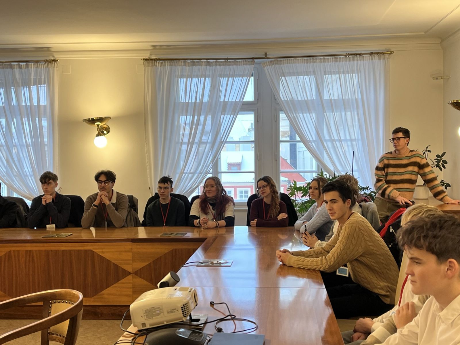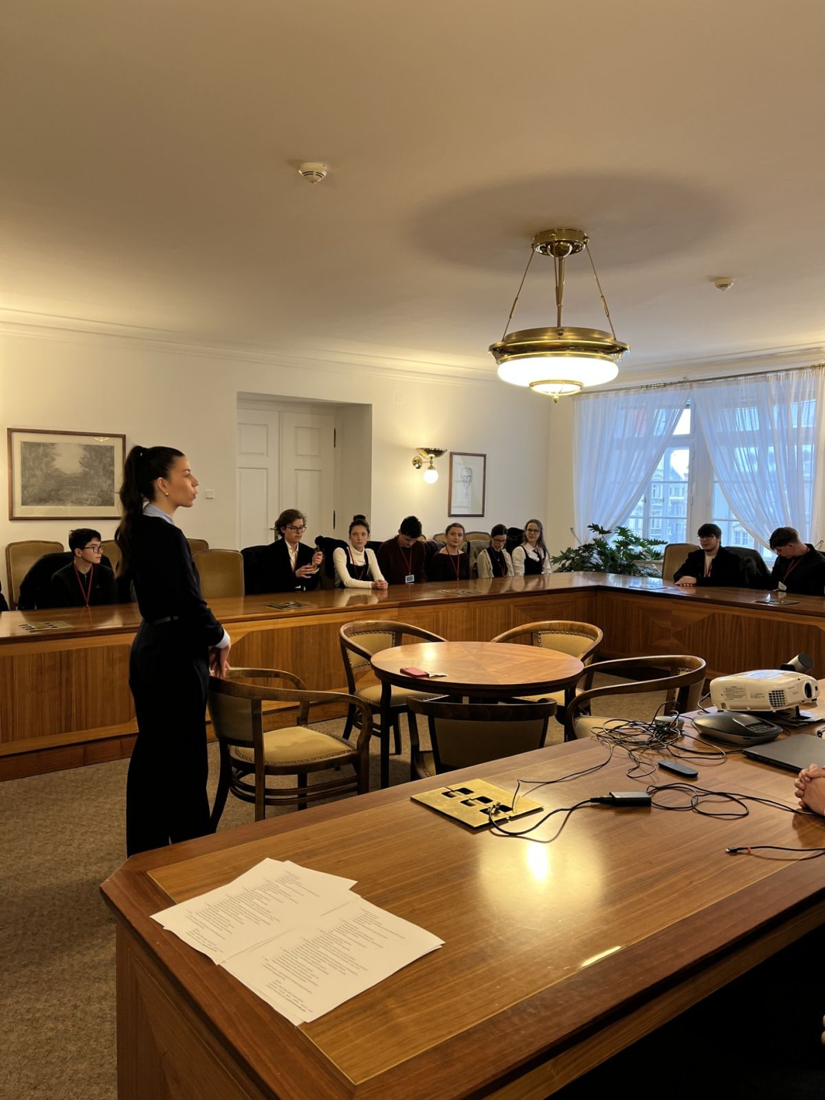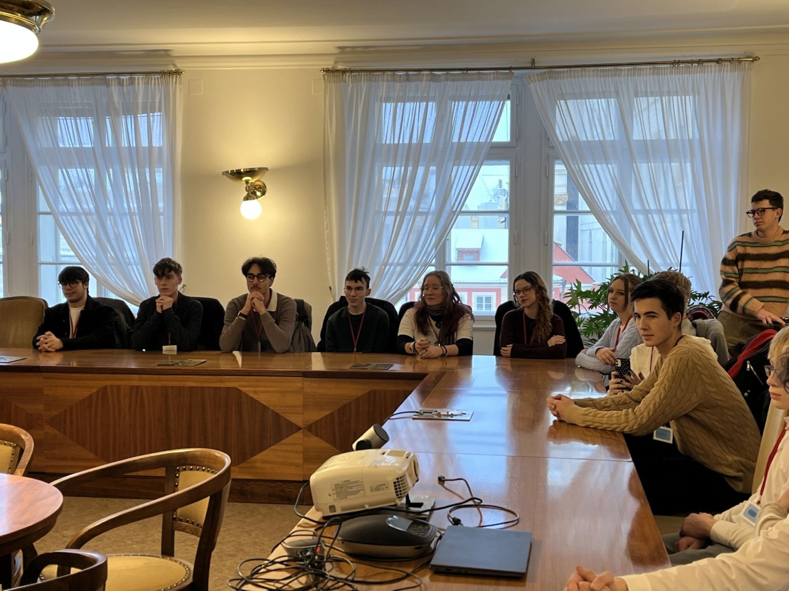 Exkurze se i navzdory nepřízni zasněžených cest povedla uskutečnit a za to patří velký dík radě Školního parlamentu a hlavně paní učitelce Macánové. Ale teď už k tomu, co nás v historickém Thunovském paláci čekalo.